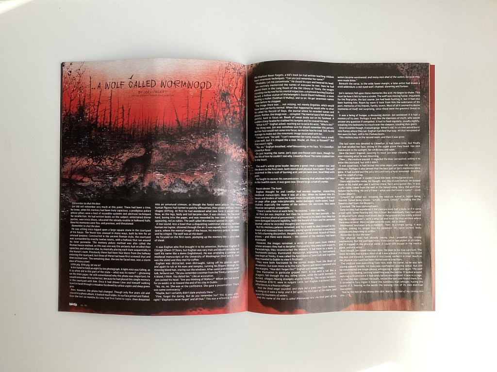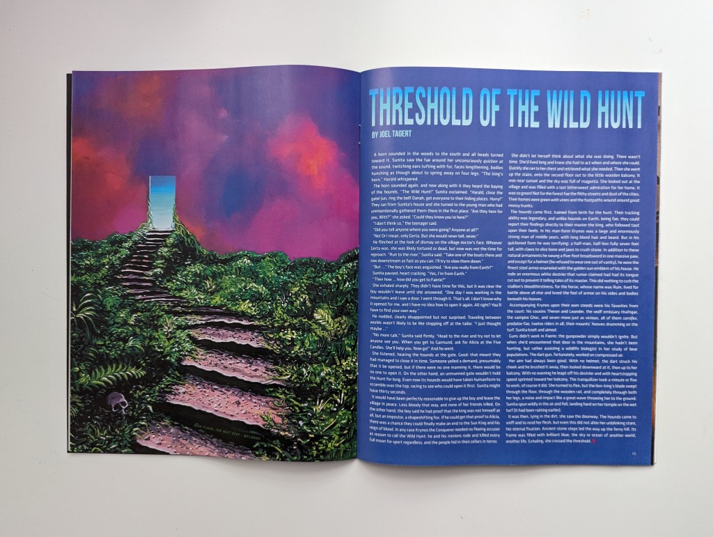 “Threshold of the Wild Hunt” appears in Birdy #125, May 2024, with art by @flooko. It’s a quick dip into the land of Faerie: